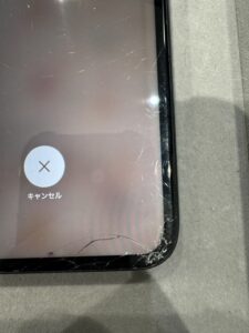 iPhone11のガラスが割れて、まずは割れた箇所だけが押されていると思っていたようですが、実は画面全体でタッチ操作が効かなくなっていたのです。