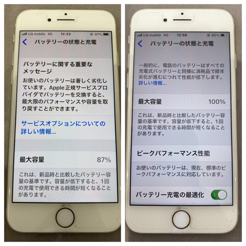 しかし、バッテリー最大容量は87%で、劣化表示が出ていました。